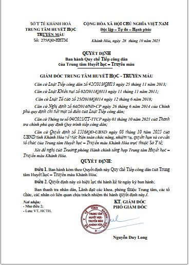 Tệp đính kèm: /Portals/0/275-QD-HHTM%20Quyet%20dinh%20ban%20hanh%20quy%20che%20tiep%20cong%20dan%20cua%20Trung%20tam%20nam%202025.pdf