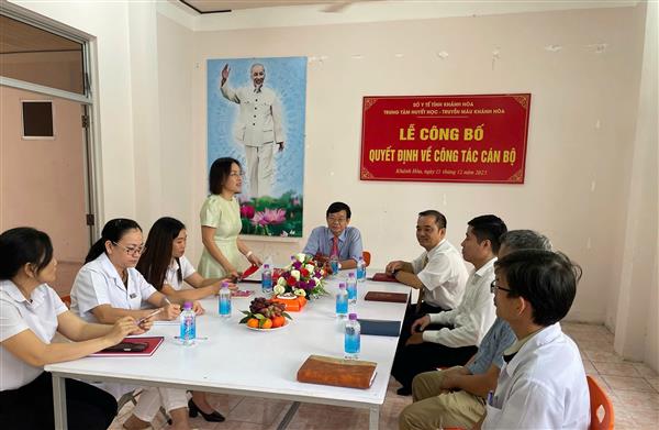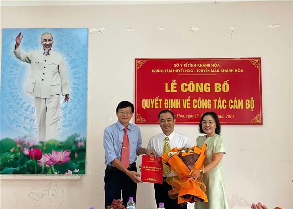 Tại buổi lễ, đại diện lãnh đạo Sở Y tế đã công bố Quyết định bổ nhiệm Ông Nguyễn Duy Long giữ chức vụ Giám đốc Trung tâm Huyết học - Truyền máu Khánh Hòa, thời hạn bổ nhiệm là 5 năm, kể từ ngày 15/12/2025.